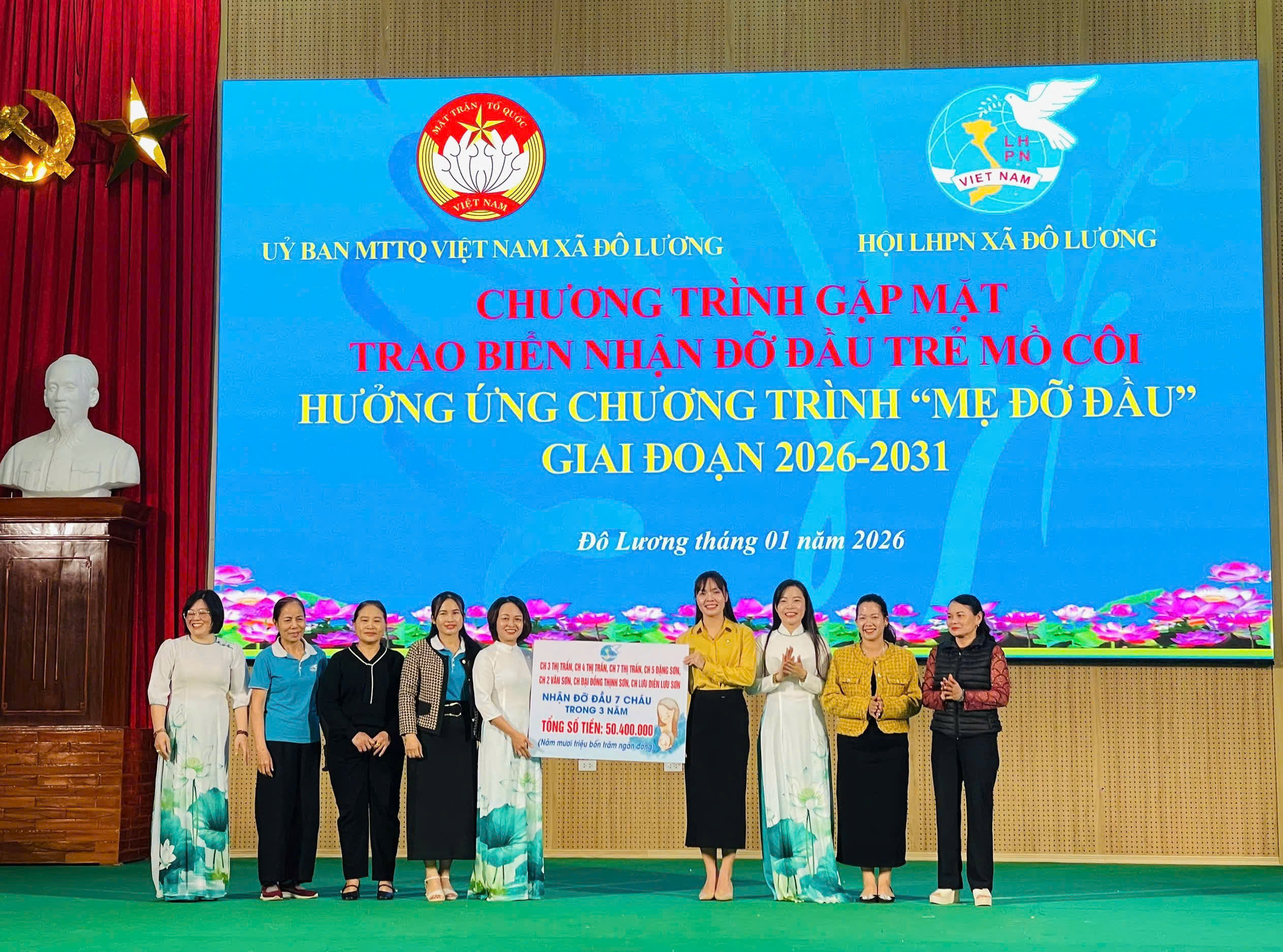Hưởng ứng Chương trình “Mẹ đỡ đầu” giai đoạn 2026–2031, sáng ngày 16/1/2026, Ủy ban MTTQ Việt Nam xã Đô Lương cùng Hội Liên hiệp Phụ nữ xã Đô Lương tổ chức Chương trình gặp mặt, nhận đỡ đầu trẻ mồ côi, hưởng ứng Chương ...