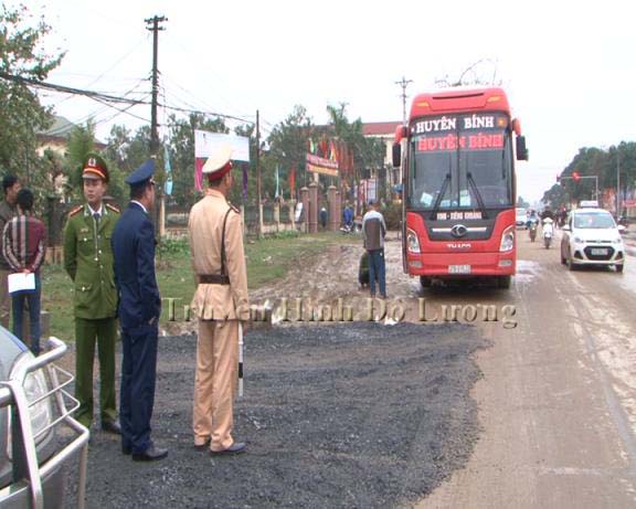 Thực hiện quyết định của UBND tỉnh Nghệ An về thành lập đoàn liên ngành kiểm tra xử lí vi phạm trong hoạt động vận tải hành khách trên địa bàn tỉnh Nghệ An, trong những ngày giáp tết, đoàn kiểm tra liên ngành đã tổ chức kiểm tra việc chấp hành các quy định về giao thông vận tải trên địa bàn huyện Đô Lương và các huyện lân cận.