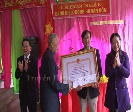 | Đ/c Nguyễn Tất Thành – Chủ tịch UBND huyện trao bằng công nhận văn hóa tới dòng họ Nguyễn Duy |