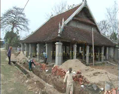 | Đình Lương Sơn đang xây dựng tường rào bao quanh |