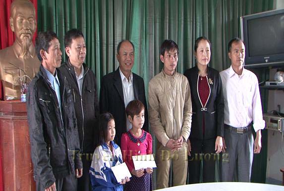 Ông Tăng Văn Tâm – Chủ tịch Hội khuyến học Đô Lương, đã trao quà tới 2 em. Cũng nhân dịp này Hội khuyến học xã Trù Sơn trao quà động viên. Số tiền tuy không lớn nhưng thể hiện sự quan tâm kịp thời của Hội khuyến học Đô Lương nhằm động viên, hỗ trợ hoàn cảnh hai em.