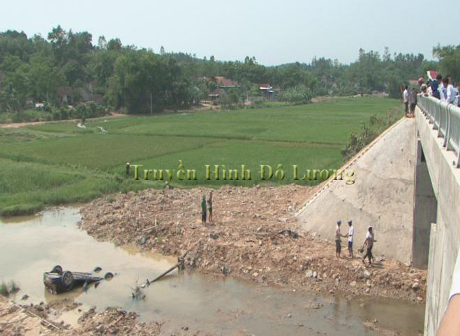 Vào khoảng 13h30 phút ngày 8/5, tại cầu mới Hồng Sơn, thuộc xã Hồng Sơn, huyện Đô Lương, một chiếc ô tô 4 chỗ đột nhiên mất lái lao xuống và lật xe ngay dưới chân cầu.