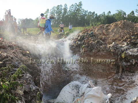 UBND huyện Đô Lương đã thành lập ban tiêu hủy động vật và tiến hành xử lý hóa chất, tiêu hủy theo quy định của pháp luật.
