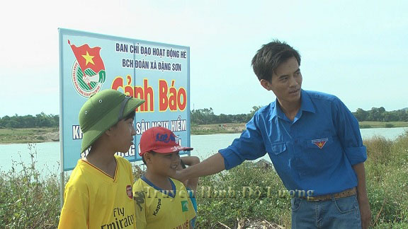 | Đoàn xã Đặng Sơn cắm biển cảnh báo khu vực nguy hiểm đề phòng đuối nước |