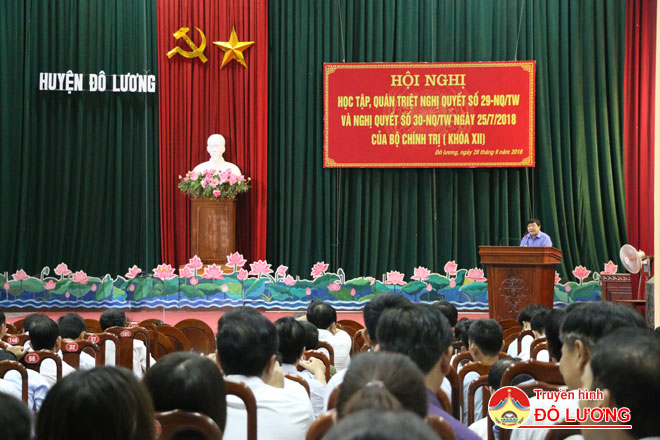 Sáng ngày 28/9/2018, huyện ủy đã tổ chức hội nghị học tập, quán triệt, triển khai thực hiện Nghị quyết số 29-NQ/TW và Nghị quyết số 30-NQ/TW của Bộ chính trị khóa XII.