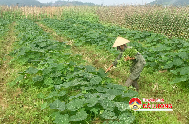Sản xuất vụ Đông năm 2018 cùng với việc trồng ngô, bí, nhiều hộ nông dân ở Đô Lương còn tập trung trồng nhiều loại cây hoa màu như mướp đắng, mướp hương, bầu lấy ngọn, lấy quả cho thu nhập cao.