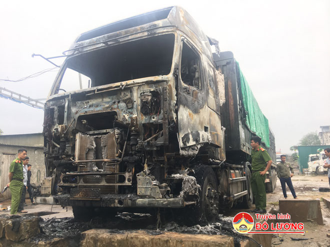 Vào lúc 5h ngày 9/11/2018, tại bãi đỗ xe Chợ Lường huyện Đô Lương đã xảy một vụ cháy xe đầu kéo.