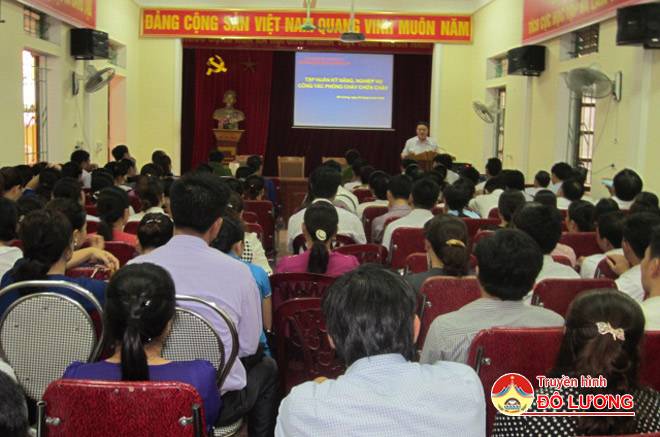 Sáng ngày 5/8, Phòng GD&ĐT Đô Lương phối hợp với Phòng cảnh sát PCCC số 5 – Công an tỉnh Nghệ An tổ chức lớp tập huấn kĩ năng, nghiệp vụ PCCC năm 2016. Tới dự có các đồng chí Cao Đức Sáng – Đại tá – Trưởng phòng Cảnh sát PCCC số 5, Nguyễn Tất Tây – Trưởng phòng GD&ĐT huyện.