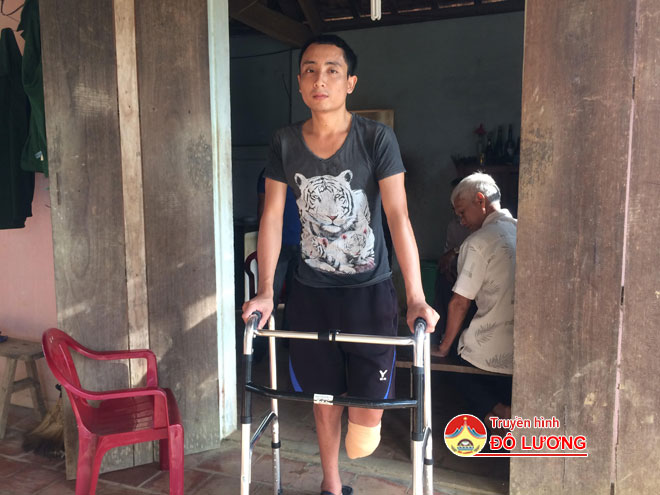 Sau 3 năm thuốc thang, chạy chữa anh Nguyễn đã hồi phục và đi lại được nhưng không làm được việc nặng, cuộc sống vẫn phải dựa vào bố mẹ. Niềm vui chưa được bao lâu thì cách đây 4 tháng, anh Nguyên lại bị nhiễm trùng vi rút làm hoại tử phải cắt bỏ đi một chân cuộc sống hiện tại rất khó khăn.