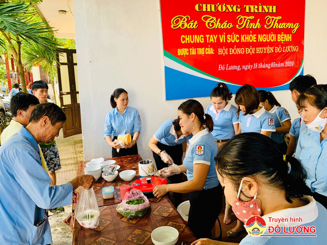 Sáng ngày 18/5/2020, Hội đồng Đội huyện Đô Lương tổ chức chương trình “bát cháo tình thương” tại bệnh viện Đa khoa huyện Đô Lương. Kết quả, đã phát được 150 bát cháo trị giá 1.500.000đ cho bệnh nhân đang điều trị tại bệnh viện Đa khoa huyện Đô Lương.