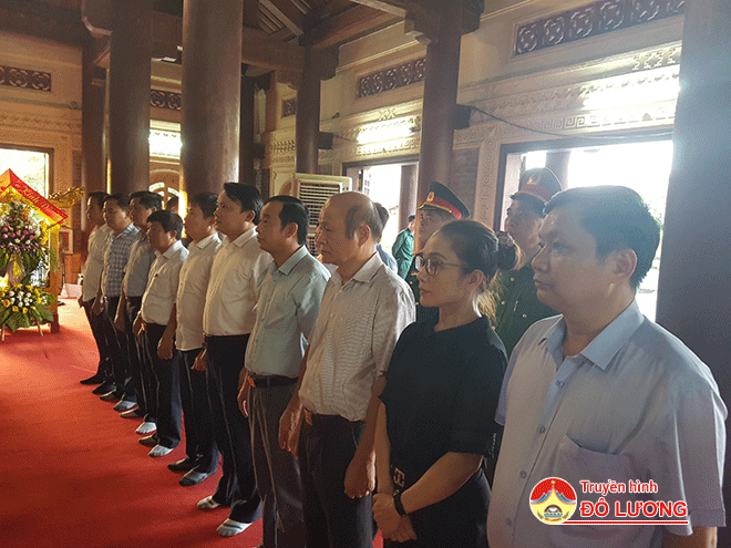 Cũng nhân dịp này, các đồng chí lãnh đạo huyện đã dâng hoa, dâng hương bày tỏ lòng biết ơn sâu sắc các anh hùng liệt sỹ đã anh dũng hi sinh vì sự nghiệp giải phóng dân tộc và bảo vệ Tổ quốc tại đền thờ các anh hùng liệt sỹ Truông Bồn.