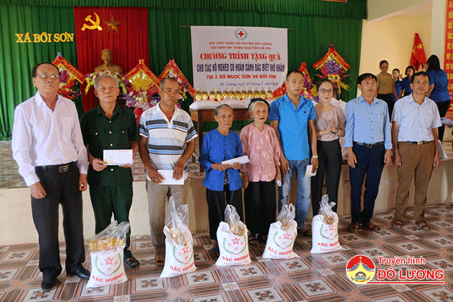 Tại xã Bồi Sơn, hội anh em thiện nguyện Hà Nội đã tặng 60 suất quà cho các gia đình chính sách và gia đình có hoàn cảnh đặc biệt khó khăn ở các xã Ngọc Sơn, Bồi Sơn, Lưu Sơn, Thượng Sơn và xã Đặng Sơn.