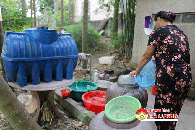 Nhiều gia đình phải giữ trữ nước bằng nhiều cách để đảm bảo sinh hoạt.