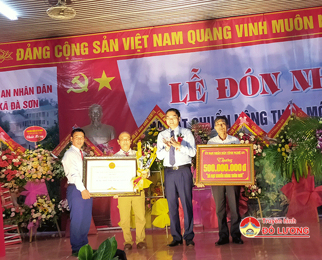 Đồng chí Hoàng Nghĩa Hiếu – Phó chủ tịch UBND tỉnh Nghệ An đã trao bằng công nhận đạt chuẩn NTM cho xã Đà Sơn và trao bằng khen cho các tập thể, cá nhân có thành tích xuất sắc.