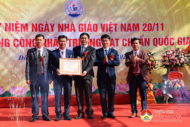 Sáng ngày 14/11, Trường THPT Đô Lương III tổ chức lễ kỷ niệm ngày Nhà giáo Việt Nam và đón nhận trường chuẩn Quốc gia. Tới dự có thầy giáo Đào Công Lợi – Phó giám đốc sở Giáo dục & Đào tạo, đồng chí Nguyễn Tất Hoài Hiệp – Phó bí thư thường trực Huyện ủy, các đồng chí trong BTV Huyện ủy, các thầy giáo, cô giáo đã nghỉ hưu.