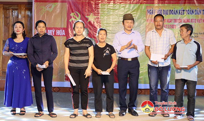 Nhân dịp này, thay mặt lãnh đạo huyện đồng chí Hoàng Hữu Hùng đã trao tặng xóm Mỹ Hòa bức chân dung chủ tịch Hồ Chí Minh và Chủ tịch Tôn Đức Thắng và trao qua 5 gia đình có hoàn cảnh khó khăn.