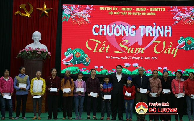 Với số tiền đó huyện Đô Lương tổ chức trao 2300 suất quà cho các gia đình nghèo, người có công có hoàn cảnh khó khăn, người khuyết tật, người già cô đơn không nơi nương tựa, nạn nhân bị nhiễm chất độc da cam Đioxin, những người bị bệnh hiểm nghèo và trẻ em có hoàn cảnh đặc biệt khó khăn.