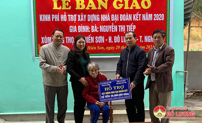 Cũng trong đợt này Công ty cổ phần tập đoàn Phúc Sơn đã trao 8 nhà đại đoàn kết cho huyện Đô Lương để giúp các gia đình khó khăn vươn lên ổn định cuộc sống và đón tết cổ truyền phấn khởi.
