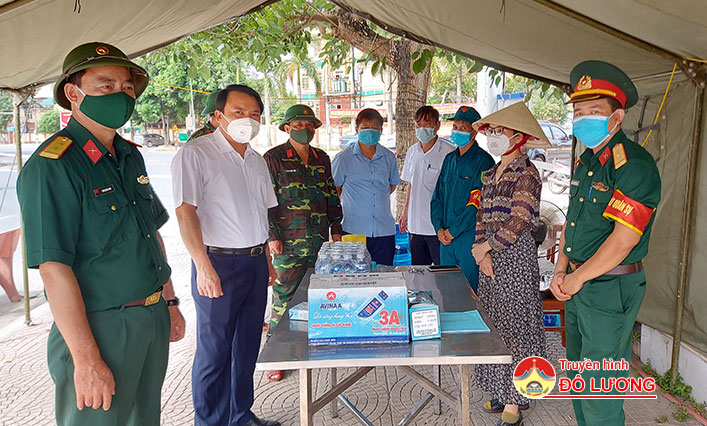 Cũng trong sáng nay, đồng chí Phùng Thành Vinh và đồng chí Nguyễn Thị Anh Quang đã thăm và tặng quà cho các đồng chí Ban chỉ huy quân sự huyện đang làm nhiệm vụ các chốt tại Công an huyện. Ban chỉ huy quân sự huyện cũng đã phân công 100% cán bộ, chiến sỹ tham gia công tác phòng chống dịch 24/24 h.