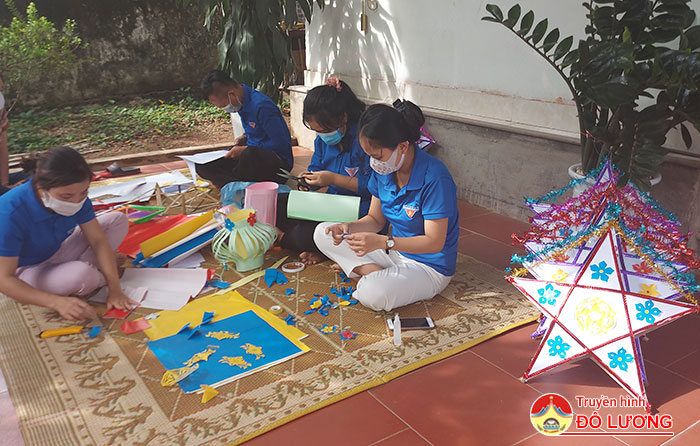 Vào những ngày này, Đoàn viên thanh niên xã Đông Sơn và các xã, thị trên địa bàn huyện Đô Lương đã tổ chức làm đèn lồng, đèn ông sao để tặng cho các em thiếu nhi nghèo nhân dịp tết trung thu 2021. Người chẻ tre làm khung, người cắt vẽ hoa trang trí – mỗi người 1 việc để tạo ra những chiếc đèn lồng.