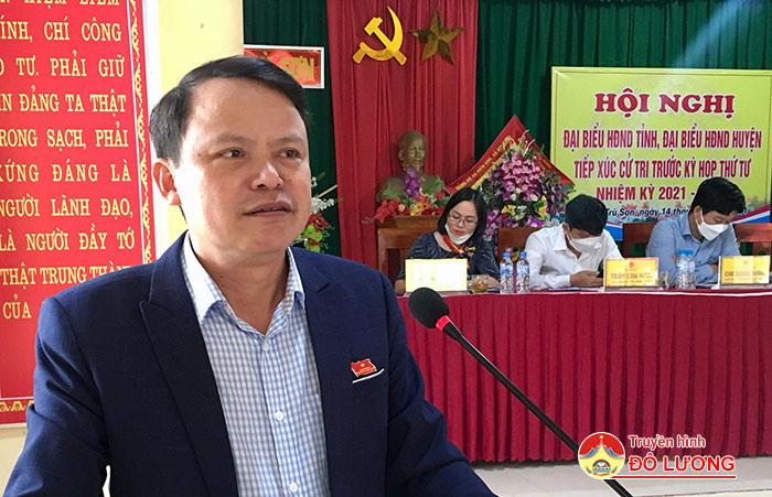 Sau khi lắng nghe ý kiến của cử tri, các vị đại biểu HĐND huyện, tỉnh đã làm rõ vấn đề cử tri nêu. Cụ thể: Liên quan đến kênh mương UBND xã phải cân đối ngân sách, kết hợp vận động nhân dân đóng góp để đầu tư xây dựng. Vấn đề đường giao thông nông thôn, xã cần vận động đóng góp kinh phí để đầu tư xây dựng ngay sau khi có nguồn hỗ trợ xi măng của cấp trên. Việc khai thác đá ảnh hưởng đến nhà dân, UBND huyện Đô Lương đã có văn bản, đề nghị UBND xã phải kiểm tra thường xuyên việc khai thác đá của doanh nghiệp. Việc UBND xã thu hồi gần 2000m2 đất vùng ao của xóm 1 là đúng pháp luật. Vấn đề chính hút ma túy cần, cử tri cần có thông tin kịp thời đến lực lượng Công an chính quy của xã. Về dấu hiệu níu kéo sự nghiêm minh của pháp luật trong một vụ án xảy ra trên địa bàn xã, vấn đề này cơ quan Tòa án đã xét xử, công dân nếu thấy chưa đúng, cần tiếp tục kiến nghị lên cơ quan tòa án.
