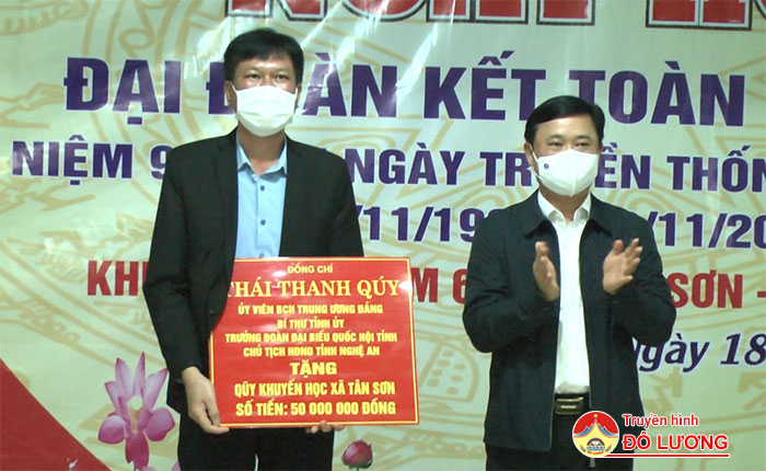 Dịp này, Bí thư Tỉnh uỷ Thái Thanh Quý đã trao tặng bức ảnh Bác Hồ và Bác Tôn, trao quà cho khu dân cư xóm 6, xã Tân Sơn; đồng thời trao tặng Quỹ khuyến học xã Tân Sơn 50 triệu đồng.