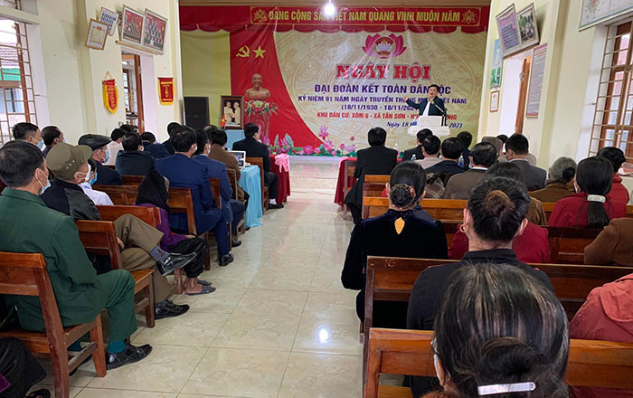 Chiều 18/11, Bí thư Tỉnh ủy Thái Thanh Quý đã dự và vui ngày hội Đại đoàn kết với nhân dân xóm 6 xã Tân Sơn.Về phía huyện có các đồng chí Phùng Thành Vinh Tỉnh ủy viên- Bí thư Huyện ủy, Nguyễn Tất Hoài Hiệp- Phó bí thư thường trực Huyện ủy, Hoàng Văn Hiệp- Chủ tịch UBND huyện, Nguyễn Thị Anh Quang- Phó chủ tịch UBND huyện, Vương Thị Quý- Chủ tịch UBMTTQ huyện.