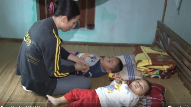 Vào ngày nghỉ, chị Trần Thị Thanh mới có chút thời gian ít ỏi cùng bà nội chăm con. Kết hôn từ năm 2009, chị sinh được cháu Trần Văn Tiến. Mong mỏi con chào đời khỏe mạnh, thế nhưng càng lớn, cháu Tiến lại không thể ngồi vững. Đem con đi ra Hà Nội chữa trị mới biết con bị bệnh bại não. Từ đó đến nay, cứ vài tháng gia đình lại phải đưa con đi chữa bệnh được một lần. Đến năm 2015, chị sinh được cháu gái tên Trần Thị Anh Thơ. Cháu Thơ đã 15 tháng nhưng cũng chưa thể đi và cũng không thể ngồi được. May mắn thay, cháu Trần Thị Thanh Thảo sinh năm 2012 vẫn còn khỏe mạnh. Tuy nhiên, lương công nhân của chị không thể đủ để nuôi chồng, chữa bệnh cho con.