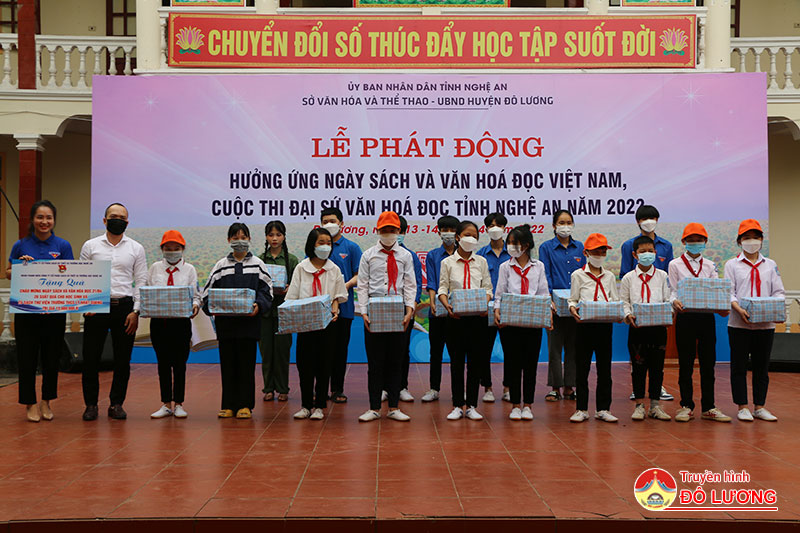 Nhân dịp này, Ban tổ chức đã trao 30 suất quà cho các em học sinh nghèo vượt khó học giỏi trên địa bàn huyện Đô Lương. Công ty cổ phần sách, thiết bị trường học đã trao quà cho trường THCS Lý Nhật Quang; Nhà xuất bản sách Nghệ An đã trao sách cho thư viện Trung tâm VHTT&TT Đô Lương.