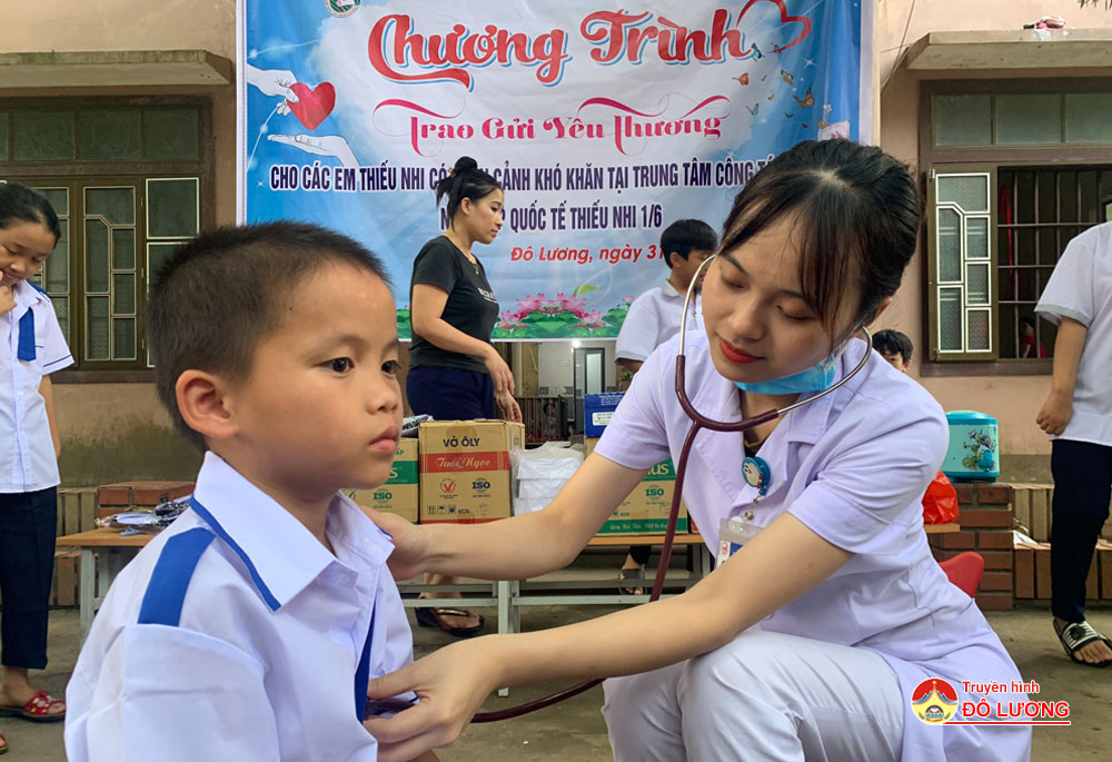 Tại chương trình “Trao gửi yêu thương”, các em đã các Bác sỹ khám tai- mũi- họng, tim, phổi…và một số bệnh thường gặp ở trẻ em.