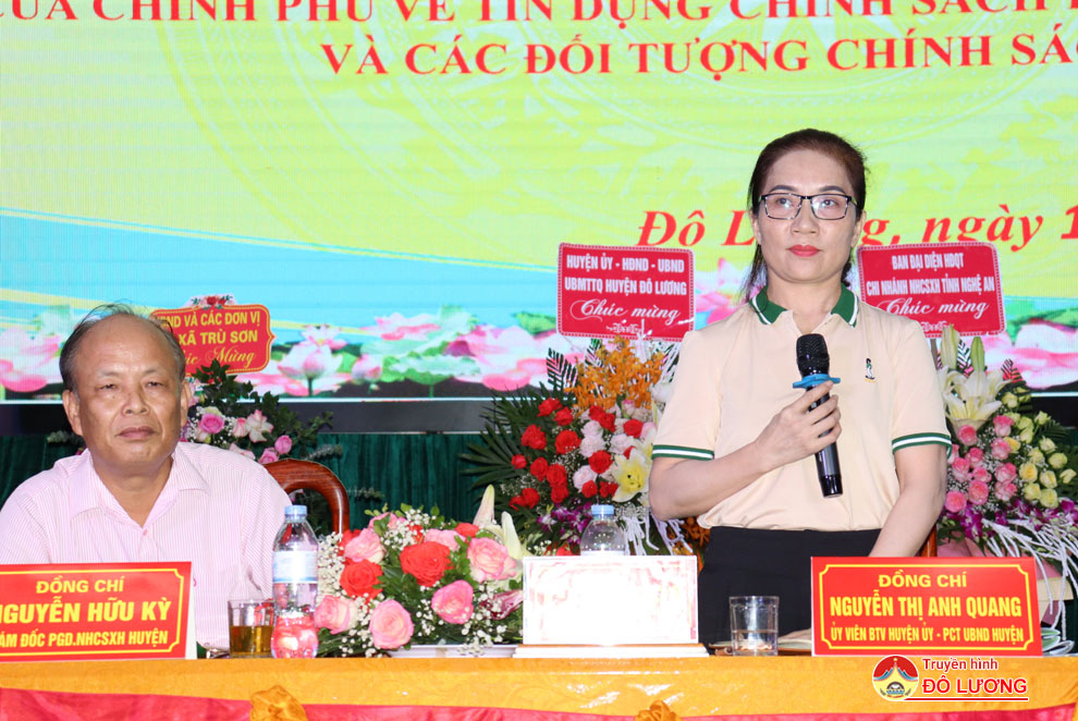Về dự hội nghị có đồng chí Nguyễn Văn Vinh- Phó giám đốc Ngân hàng chính sách xã hội tỉnh, đồng chí Nguyễn Tất Hoài Hiệp- Phó Bí thư Thường trực Huyện ủy. Đồng chí Nguyến Thị Anh Quang- Phó chủ tịch UBND huyện, Trưởng ban đại diện HĐQT Ngân hàng chính sách xã hội huyện, Nguyễn Hữu Kỳ- Giám đốc Ngân hàng chính sách xã hội huyện chủ trì hội nghị.