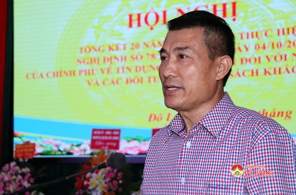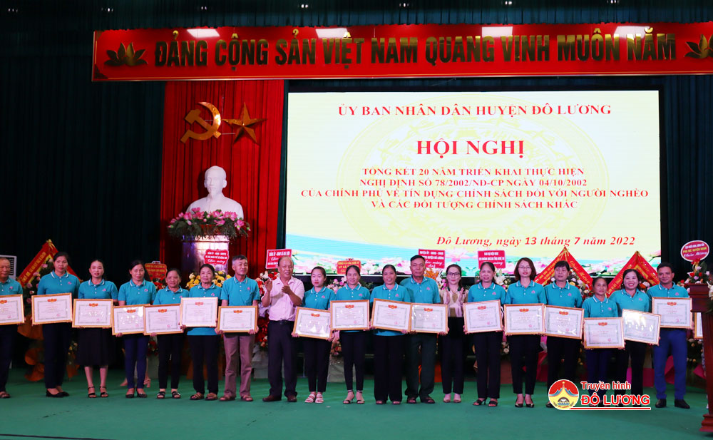 Sáng ngày 13/7, UBND huyện Đô Lương đã tổ chức hội nghị tổng kết 20 năm triển khai chính sách tín dụng đối với người nghèo và các đối tượng chính sách khác theo Nghị định số 78/2002/NĐ-CP ngày 4/10/2002 của Chính Phủ.