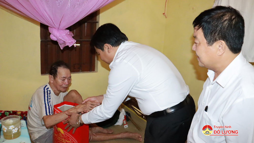 Thay mặt lãnh đạo Huyện uỷ- HĐND- UBND- UBMTTQ huyện Đô Lương, đồng chí đồng chí Phùng Thành Vinh đã động viên hỏi thăm sức khoẻ các đối tượng, bày tỏ lòng biết ơn các liệt sỹ, các thương bệnh binh đã anh dũng chiến đấu, hy sinh để bảo vệ độc lập tự do cho Tổ quốc.