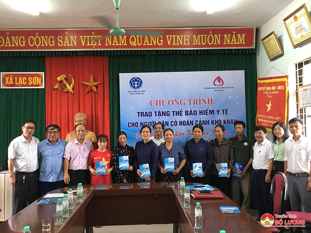 Tại xã Lạc Sơn, BHXH tỉnh, BHXH Đô Lương, Chi nhánh Ngân hàng chính sách xã hội tỉnh và Phòng giao dịch Ngân hàng chính sách xã hội huyện đã trao tặng 20 thẻ bảo hiểm y tế cho người dân có hoàn cảnh khó khăn.