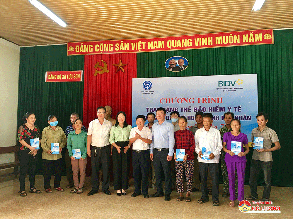 Tại xóm Lưu Quang- xã Lưu Sơn, BHXH tỉnh, BHXH huyện Đô Lương và Ngân hàng đầu tư phát và phát triển Việt Nam- Chi nhánh Nghệ An đã tổ chức trao tặng 50 thẻ bảo hiểm y tế cho người dân có hoàn cảnh khó khăn.