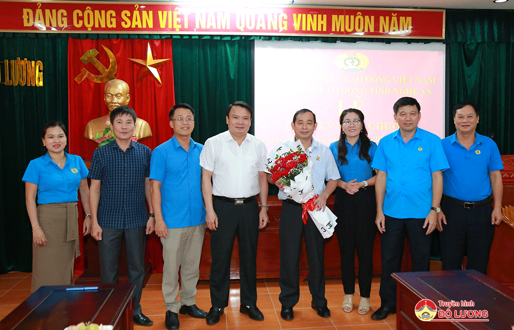 Tham dự có đồng chí Kha Văn Tám – Ủy viên BCH Tổng liên đoàn Lao động Việt Nam, Ủy viên BCH Đảng bộ tỉnh, Bí thư Đảng đoàn, Chủ tịch LĐLĐ tỉnh; các đồng chí thường trực LĐLĐ tỉnh. Về phía huyện Đô Lương có các đồng chí: Phùng Thành Vinh – Ủy viên BCH Đảng bộ tỉnh, Bí thư Huyện ủy, Chủ tịch HĐND huyện; đồng chí Nguyễn Tất Hoài Hiệp – Phó bí thư Thường trực Huyện ủy; Hoàng Văn Hiệp – Phó bí thư Huyện ủy, Chủ tịch UBND huyện, các đồng chí trong BTV Huyện ủy, lãnh đạo và chuyên viên LĐLĐ huyện.