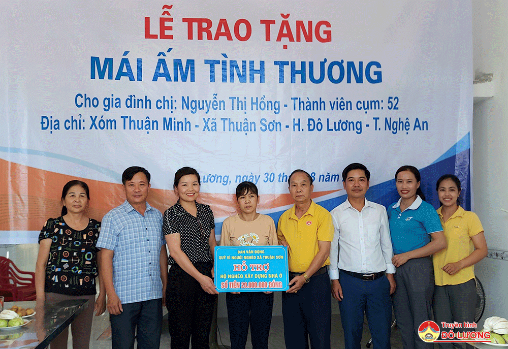 Sau 3 tháng khởi công xây dựng, chiều ngày 30/8/2022, TYM Chi nhánh Đô Lương phối hợp với hội phụ nữ huyện và xã Thuận Sơn tổ chức lễ bàn giao nhà mái ấm tình thương cho chị Nguyễn Thị Hồng, thành viên cụm 52, ở Chi hội Thuận Minh, hội phụ nữ xã Thuận Sơn.