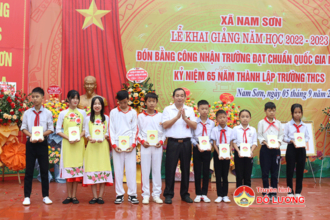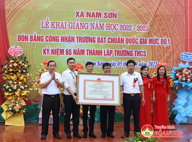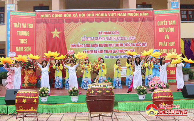 Sáng 5/9, Trường THCS Nam Sơn tổ chức lễ khai giảng năm học 2022 – 2023, đón Bằng công nhận Trường đạt chuẩn Quốc gia mức độ 1 và kỷ niệm 65 năm thành lập trường. Tham dự lễ có đồng chí Hoàng Văn Hiệp – Phó Bí thư Huyện ủy, Chủ tịch UBND huyện; Nguyễn Minh Hạnh – Trưởng ban Tuyên giáo Huyện ủy; Nguyễn Thị Hương Thủy – Chủ tịch LĐLĐ huyện; lãnh đạo xã Nam Sơn và các thế hệ giáo viên và học sinh Trường THCS Nam Sơn.