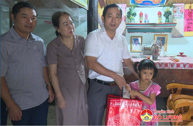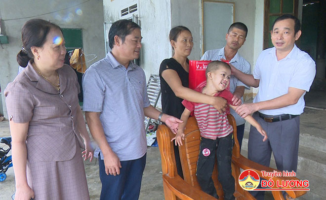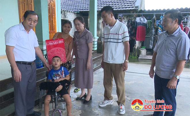 Tại xã Nhân Sơn, đoàn đã vào thăm, tặng quà cho em Nguyễn Bá Toàn- xóm Văn Khuê, em Nguyễn Đăng Đạt- xóm Văn Tân.