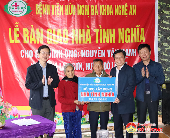 Tại xóm 5 xã Lam Sơn, Phó giáo sư- Tiến Sỹ Nguyễn Văn Hương- Bí thư Đảng ủy- Giám đốc bệnh viện hữu nghị đa khoa Nghệ An cùng các đồng chí trong đoàn đã trao số tiền 60 triệu đồng cho hộ gia đình ông Nguyễn Văn Hạnh-SN 1942 là đối tượng thương binh, nhiễm chất độc hóa học. Đại diện gia đình ông Nguyễn Văn Hạnh đã cảm ơn sự quan tâm của Ban giám đốc cùng tập thể cán bộ, y- bác sỹ Bệnh viện hữu nghị Đa khoa Nghệ An đã quan tâm đến những người có công với cách mạng.