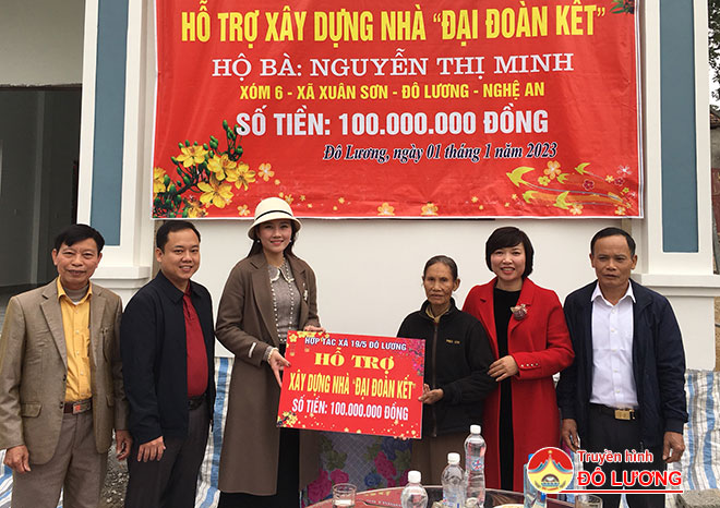 Chiều ngày 1/1/2023, tại xã Xuân Sơn- Đô Lương, hưởng ứng lời kêu gọi của Đoàn Chủ tịch Ủy ban Trung ương MTTQ Việt Nam về việc ủng hộ người nghèo, thông qua kết nối của đồng chí Ngọc Kim Nam- Ủy viên Ban Thường vụ Tỉnh ủy- Trưởng ban Dân vận Tỉnh ủy, Hợp tác xã 19/5 Đô Lương đã trao tiền hỗ trợ xây dựng nhà ở cho 2 hộ nghèo và 1 hộ cận nghèo ở xã Xuân Sơn- Đô Lương.