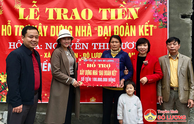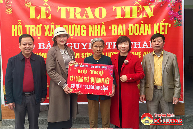 Tại xóm 6 xã Xuân Sơn- Đô Lương, chị Nguyễn Thị Thanh Tú- Giám đốc Hợp tác xã 19/5 Đô Lương đã trao 100 triệu đồng hỗ trợ tiền làm nhà ở cho bà Nguyễn Thị Minh- sn 1952 là hộ nghèo, có 3 người con, chồng mất, trong đó có 1 người con bị ảnh hưởng về trí não.