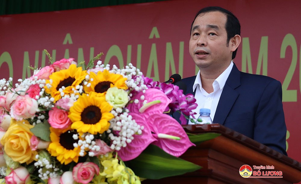 Phát biểu tại buổi lễ giao nhận quân, đồng chí Hoàng Văn Hiệp đã nhấn mạnh: “ Việc thực hiện tham gia nghĩa vụ Quân sự, nghĩa vụ Công an nhân dân không chỉ là quyền, nghĩa vụ của mỗi công dân mà đó còn là niềm vinh dự, tự hào đối với mỗi thanh niên. Cấp ủy, chính quyền, nhân dân và lực lượng vũ trang huyện nhà mong muốn và tin tưởng rằng các đồng chí sẽ nhận thức đầy đủ về trách nhiệm, nghĩa vụ của mình đối với quê hương, đất nước; tiếp tục phát huy truyền thống của các thế hệ đi trước, đem hết sức mình, dù bất cứ điều kiện, hoàn cảnh nào cũng phải đoàn kết, khắc phục mọi khó khăn, vất vả, chấp hành nghiêm pháp luật Nhà nước, kỷ luật Quân đội, Công an; ra sức học tập, rèn luyện hoàn thành xuất sắc mọi nhiệm vụ được giao. Đó chính là tình cảm, món quà quý giá mà các đồng chí dành cho quê hương, gia đình và người thân ở quê nhà”