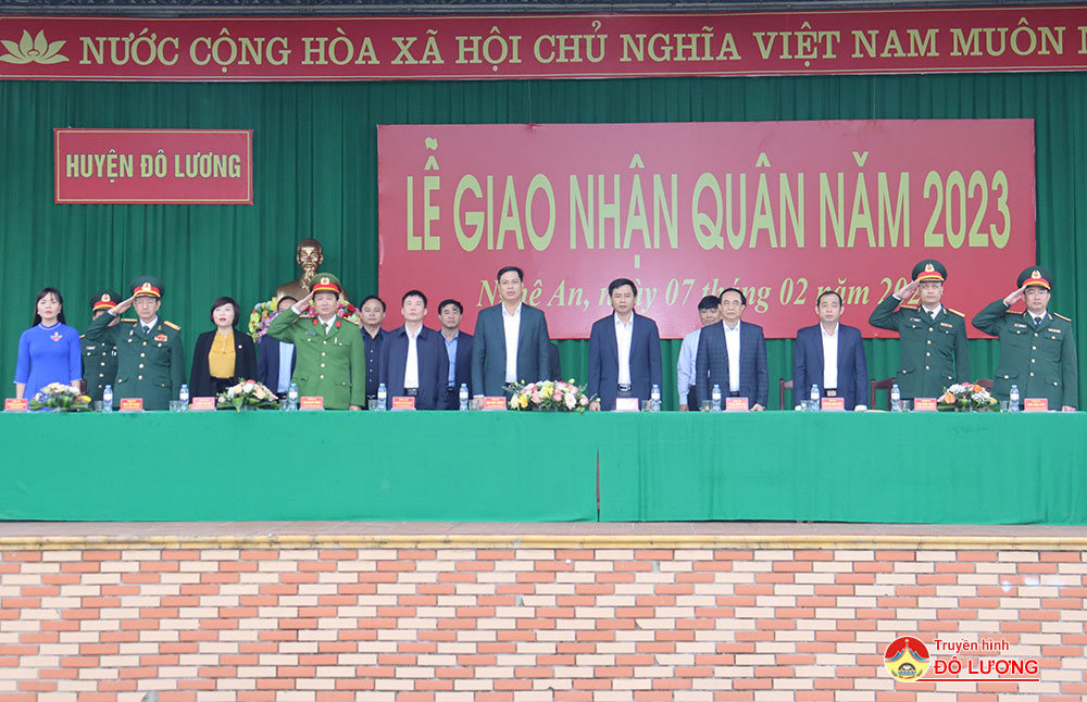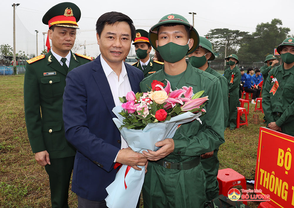Sáng nay ngày 7/2, cùng với ngày hội giao quân của cả nước, huyện Đô Lương đã tổ chức lễ giao nhận quân năm 2023. Trong không khí đầy trang nghiêm, xúc động, 238 thanh niên Đô Lương đã sẵn sàng để thực hiện nhiệm vụ. Dự lễ giao nhận quân tại Đô Lương có các đồng chí Hồ Lê Ngọc – Ủy viên BTV Tỉnh ủy, Trưởng ban nội chính Tỉnh ủy; Đoàn Hồng Vũ – Ủy viên BCH Đảng bộ Tỉnh, giám đốc Sở LĐTB&XH tỉnh; ở huyện có các đồng chí Bùi Duy Đông – Tỉnh ủy viên, Bí thư Huyện ủy; Nguyễn Tất Hoài Hiệp – Phó bí thư Thường trực Huyện ủy; Hoàng Văn Hiệp – Phó bí thư Huyện ủy, Chủ tịch UBND huyện, các đồng chí trong Ban Thường Vụ Huyện ủy đến dự, động viên các công dân lên đường nhập ngũ.