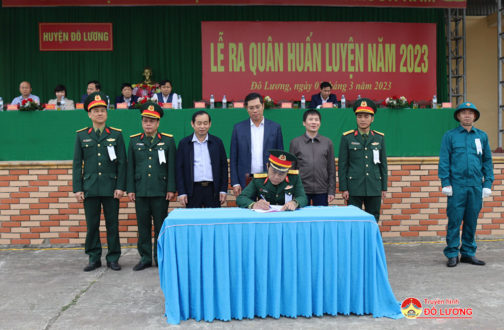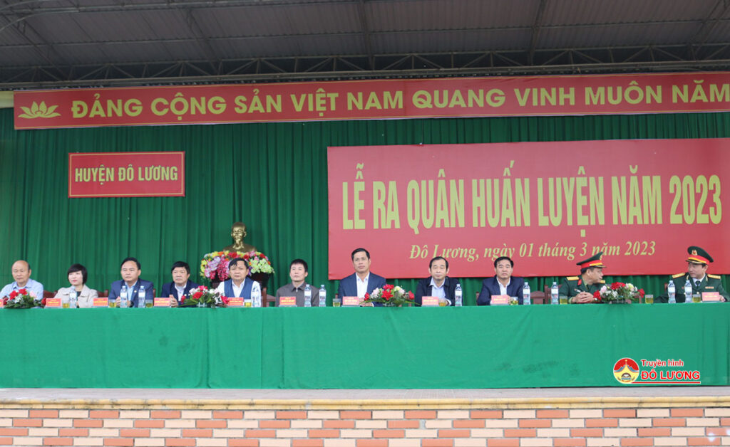 Sáng ngày 1/3, huyện Đô Lương tổ chức lễ ra quân huấn luyện năm 2023. Dự buổi lễ có các đồng chí: Bùi Duy Đông – Tỉnh ủy viên, Bí thư Huyện ủy; Nguyễn Tất Hoài Hiệp – Phó bí thư Thường trực Huyện ủy; Hoàng Văn Hiệp – Phó bí thư Huyện ủy, Chủ tịch UBND huyện; các đồng chí trong BTV Huyện ủy, Thường trực HĐND huyện, Phó chủ tịch UBND huyện, đại biểu các phòng, ban, ngành, UBMTTQ và các đoàn thể cấp huyện.