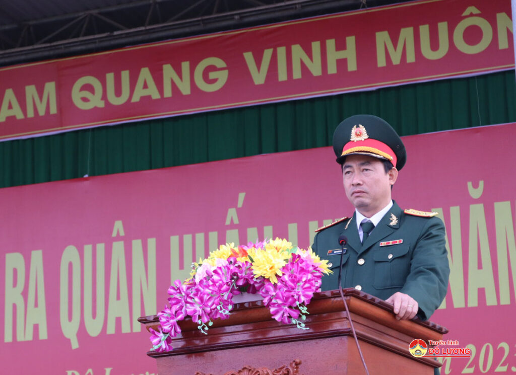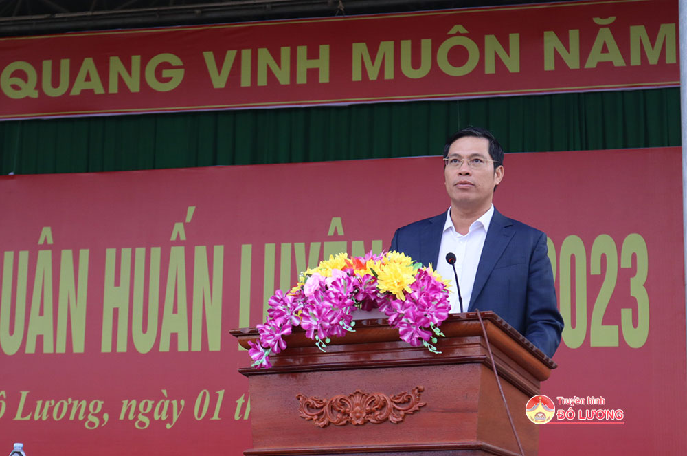 Phát biểu tại lễ ra quân huấn luyện, đồng chí Bùi Duy Đông – Tỉnh ủy viên, Bí thư Huyện ủy đề nghị cấp ủy, chính quyền, các ban, ngành, đoàn thể và lực lượng vũ trang quán triệt sâu sắc Nghị quyết Trung ương VIII về “Chiến lược bảo vệ Tổ quốc trong tình hình mới”. Quán triệt, triển khai thực hiện nghiêm túc mệnh lệnh, chỉ thị, hướng dẫn của Quân khu, Bộ CHQS tỉnh, không ngừng nâng cao chất lượng tổng hợp của lực lượng vũ trang huyện.