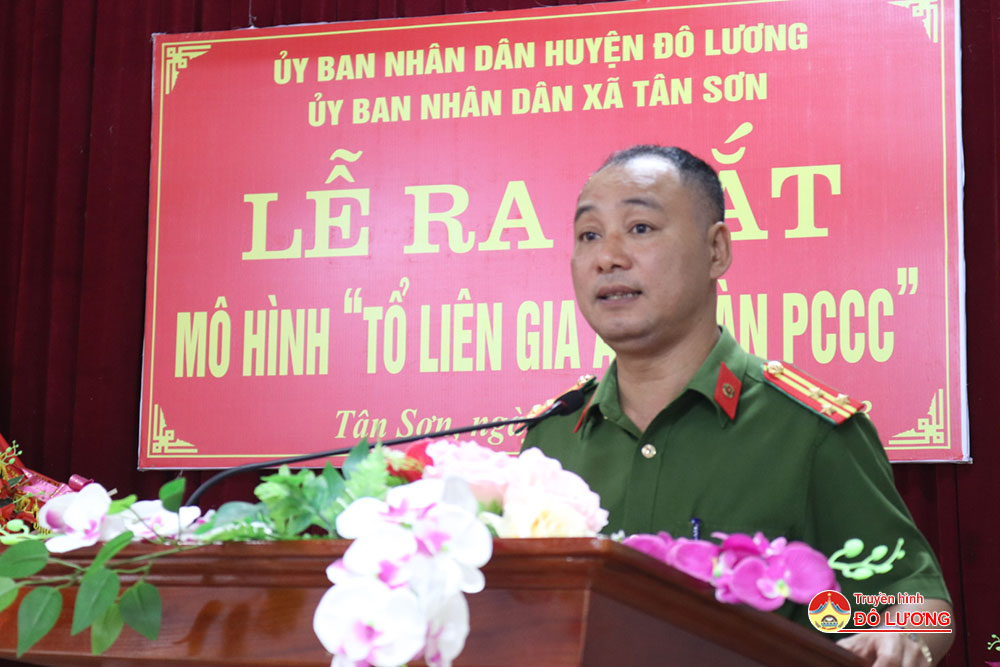 Tại buổi lễ, xã Tân Sơn đã trao quyết định thành lập tổ liên gia PCCC tại xóm 4 gồm 7 thành viên. Theo đó, tổ liên gia PCCC phải có chuông báo cháy, tiêu lệnh chữa cháy,bình chữa cháy xách tay, dụng cụ phá dỡ, nguồn nước để chữa cháy. Các thành viên được tập huấn nghiệp vụ kĩ năng cơ bản về PCCC.