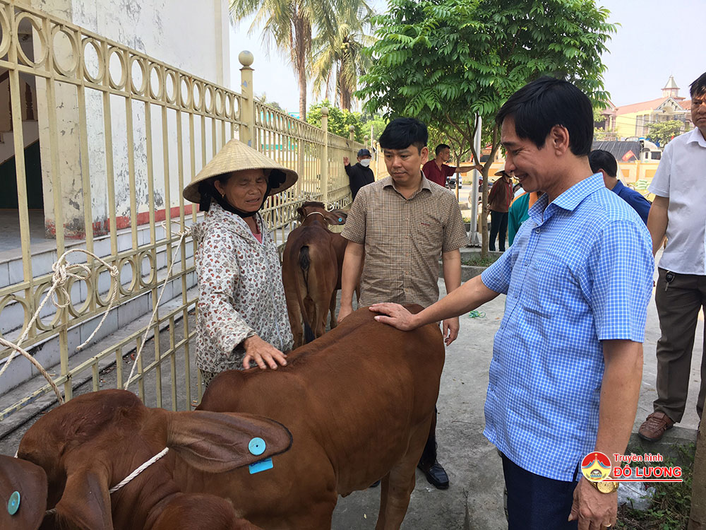 Sáng ngày 6/5, Trung tâm dịch vụ Nông nghiệp huyện Đô Lương đã tổ chức trao 43 con bê lai Sind cho 43 hộ nghèo, hộ cận nghèo, hộ thoát nghèo. Dự buổi trao bê cho các hộ gia đình có đồng chí Trần Văn Hiến- Phó chủ tịch UBND huyện, đồng chí Lê Anh Sơn- Giám đốc Trung tâm dịch vụ Nông nghiệp huyện.