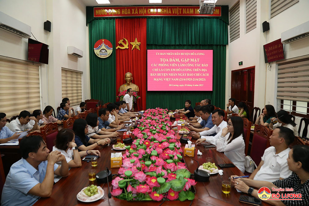 Nhân kỷ niệm 98 năm ngày báo chí Cách mạng Việt Nam (21/6/1925 – 21/6/2023), chiều ngày 18/6, UBND huyện Đô Lương đã tổ chức buổi gặp mặt các Nhà báo, Phóng viên quê Đô Lương đang công tác trên địa bàn toàn quốc. Dự buổi gặp mặt có đồng chí đồng chí Nguyễn Tất Hoài Hiệp – Phó Bí thư Thường trực Huyện ủy; đồng chí Hoàng Văn Hiệp – Phó bí thư Huyện ủy, Chủ tịch UBND huyện, các đồng chí trong Ban Thường vụ Huyện ủy, cùng lãnh đạo một số ban, phòng, ngành cấp huyện.