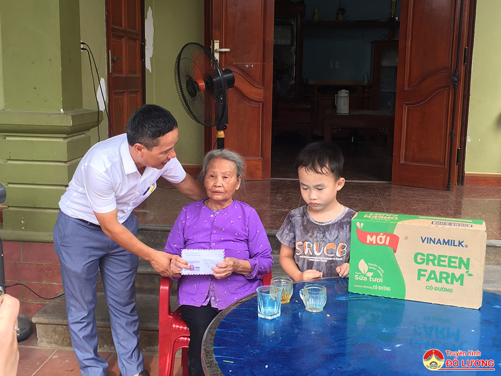 Trước khi bước vào lễ gặp mặt, các Nhà báo, Phóng viên trên khắp mọi miền Tổ quốc đã đến tặng quà và trao tiền hỗ trợ 7,5 triệu đồng cho 2 cháu bé vừa bị mồ côi tại xã Tràng Sơn, Đô Lương.